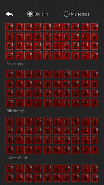 One of the great features of Heroic Battle is that you can create and save your own setups. Each setup produces a different kind of game. Do you prefer fast, wide open play or a slower more conservative pace? Do you want to fortify your flag and defend it or just hide it somewhere and dare your opponent to find it? Tu decides.